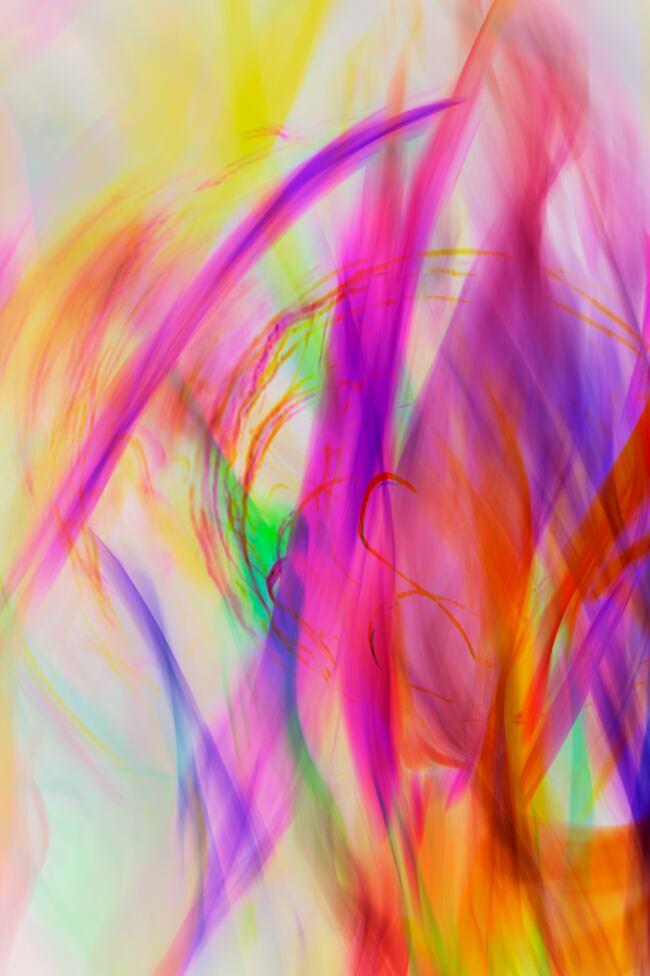 この作品は、まるで音楽のように響くエネルギッシュな作品です。色とりどりのラインが交錯し、リズム感や音楽を視覚的に表現しています。暖色と寒色が絶妙なバランスを保ち、作品全体に動きと深みを与えています。自然の力強さや感情の爆発を感じさせる作風は、観る人の心を揺さぶります。